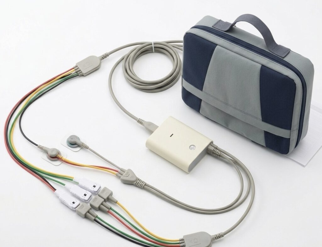 ホルター心電図検査は、小型の心電図記録装置を装着し、24時間の心電図を連続して記録する検査です。